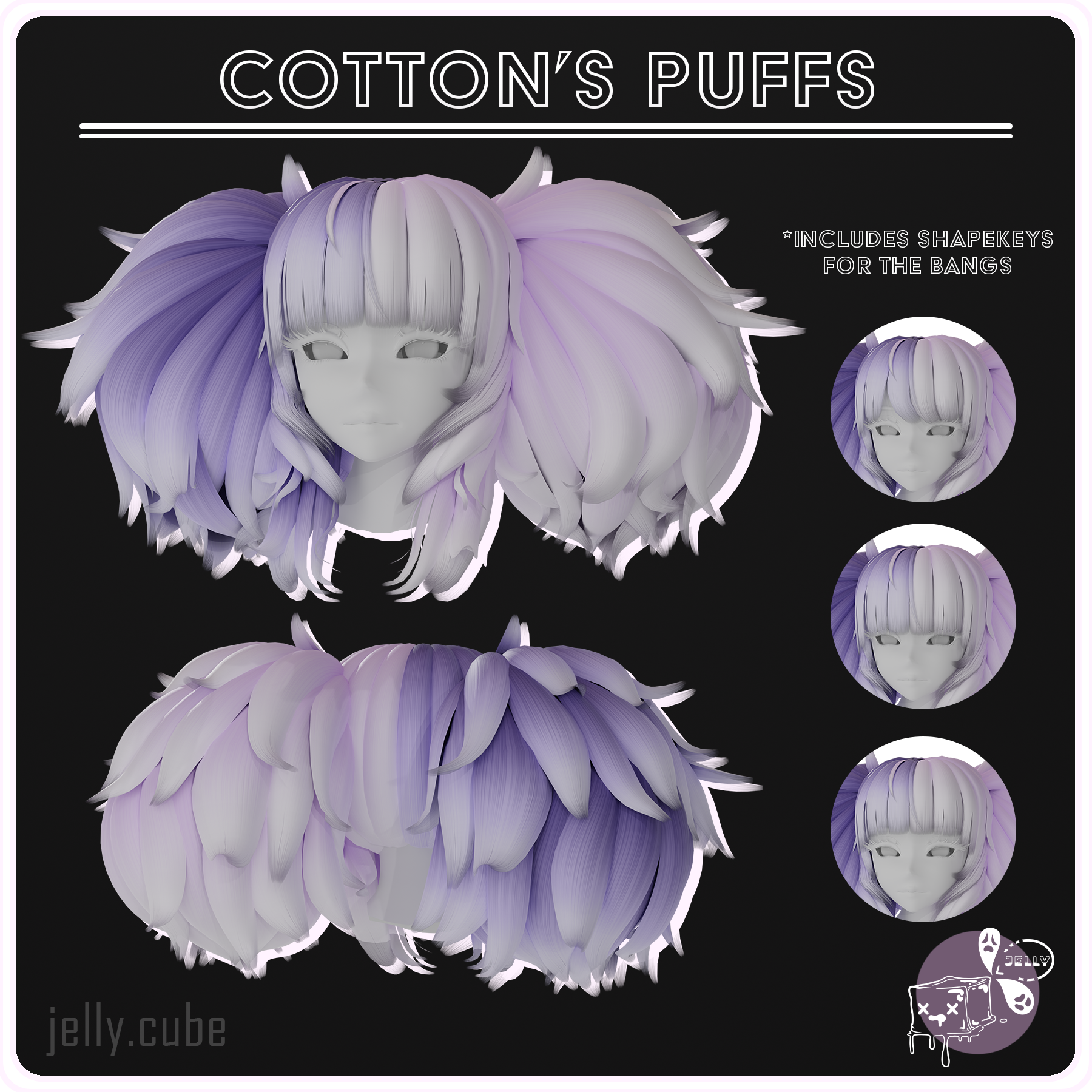 Cotton's Puffs FBX and an edited version of NikkiePNG's Hair Card Texture