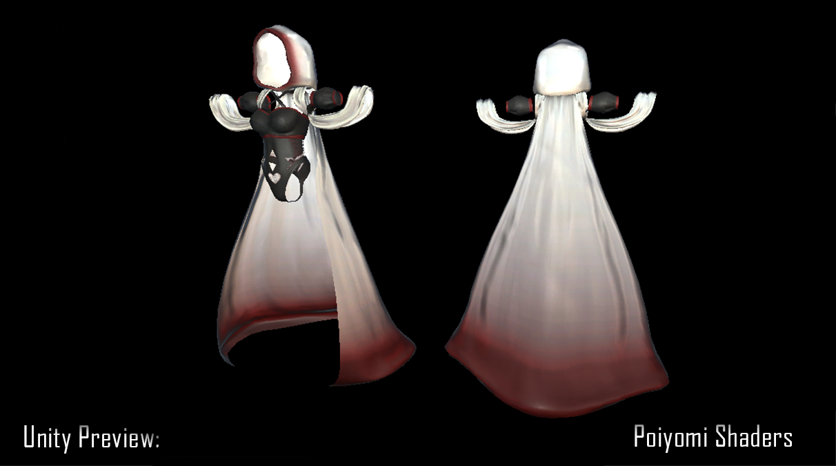 - Total: 10,728 Tris (Cloak: 4,616 Tris/Bodysuit: 2,584 Tris/Top: 3,528 Tris)